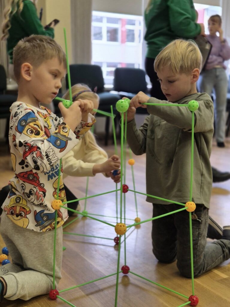 Šventėje aktyviai dalyvavo ir Marijampolės vaikų lopšelio-darželio ugdytiniai 👧🧒. Mažieji technologijų entuziastai rungėsi kurdami aukščiausią, stipriausią ir įdomiausią statinį! 🏗️ Kiekvienas vaikas galėjo pasijusti tikru kūrėju – išradingai planavo, bandė, stiprino, kūrė, o svarbiausia – mokėsi dirbti komandoje ir džiaugtis savo pasiekimais.